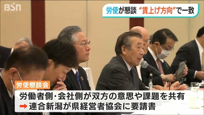 春闘が本格化する中、新潟県内の労働団体と経営者のトップが懇談し、物価高に負けない賃上げをするという方向で一致しました。
