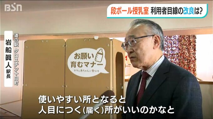 【道の駅クロステン十日町 岩船眞人 駅長】「人目がつかない所だと防犯上の問題があったりするし、使いやすい所となると人目につく(届く)所がいいのかなと。授乳室があるかないかは出かけるときの一つの選択材料になる」