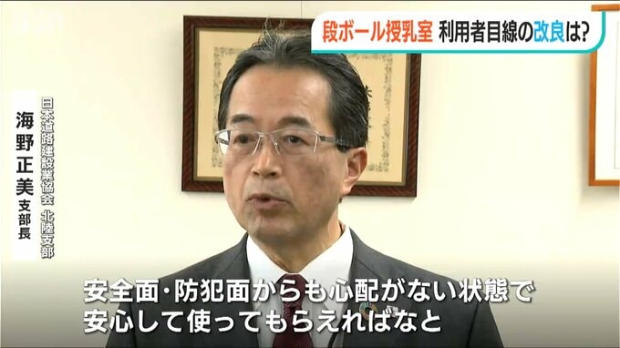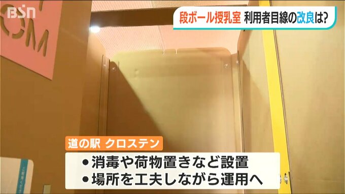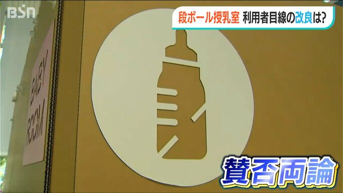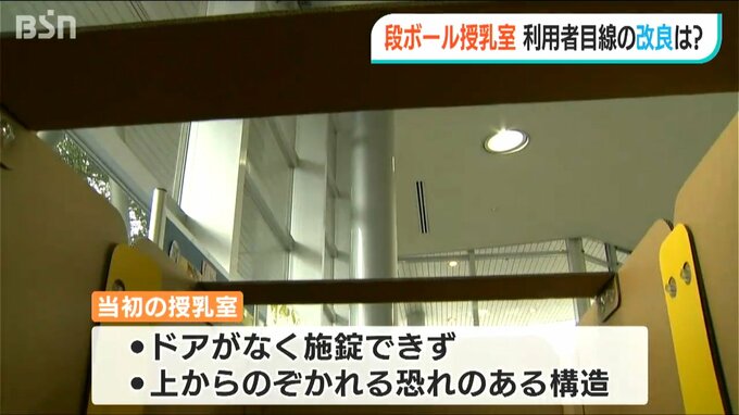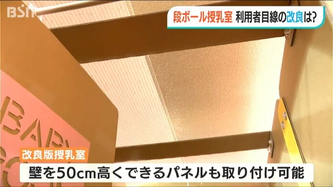 【記者リポート】「授乳室は段ボール製ですが、重みや水にも強い強化素材を使っているそうです。また、天井には梁が張ってあり、『倒れそうで心配だ』という声にも応えたということです」