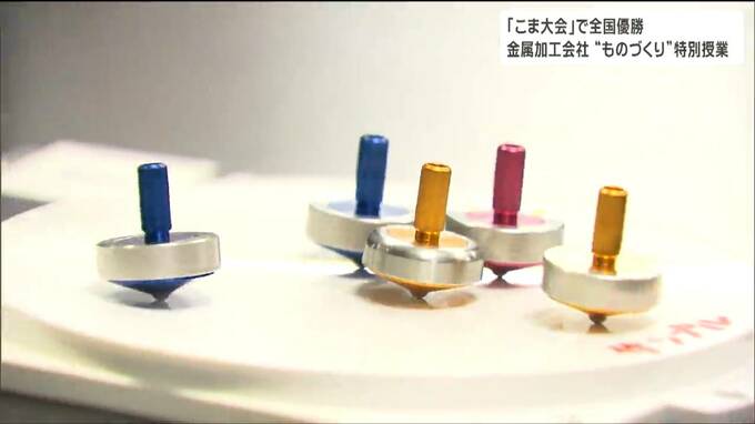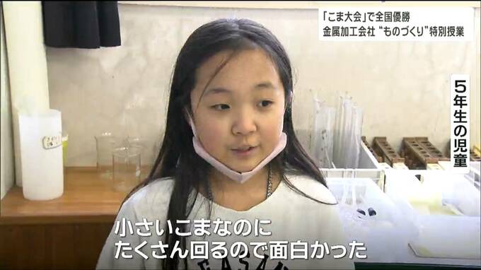 特別授業では、てこの原理を使ってこまを完成させた児童たち。さっそく戦わせて楽しんでいました。