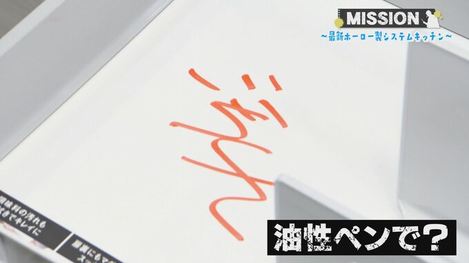 女性スタッフ「そういった汚れに見立てて、油性のマジックで実演してみます。」