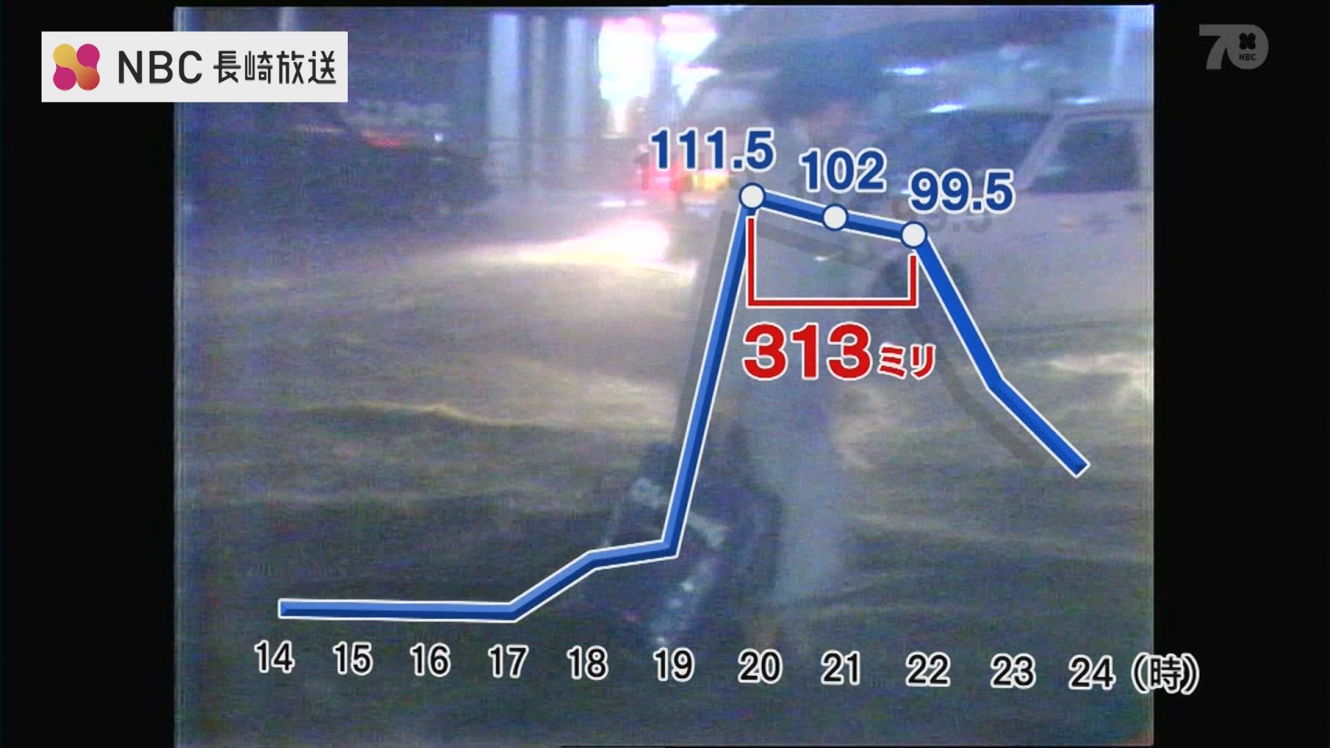 午後7時からの3時間に降った雨の量は313ミリで、6月の1か月分に相当する雨が一気に降りました。