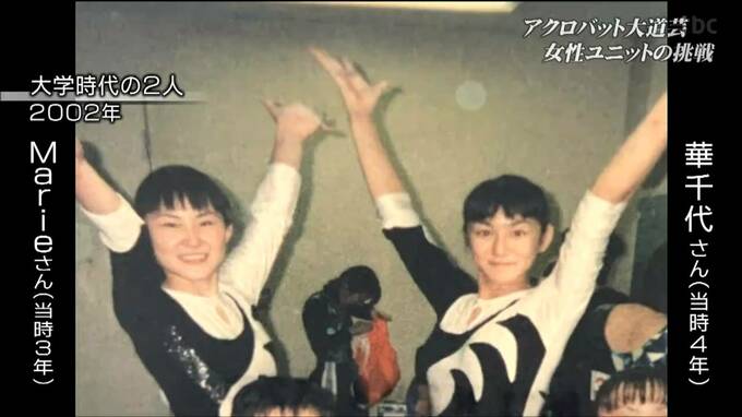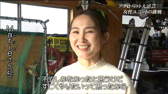 華千代さんとユニットを組む、マリエさん(42)です。妊娠をきっかけに、アクロバット以外の表現も模索していた華千代さん。高校、大学と一緒に体操をしてきたマリエさんを誘いました。