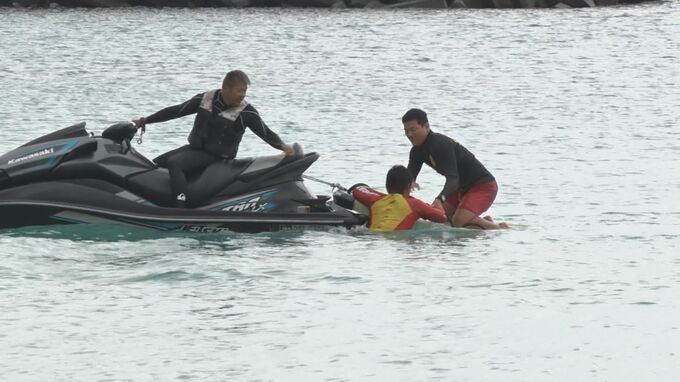 また溺れた人を水上オートバイを使って救助する訓練では、沖縄ライフセービング協会の音野太志さんが、要救助者の意識の有無や、海の状況によって注意すべき点が変わることなどをアドバイスしていました。