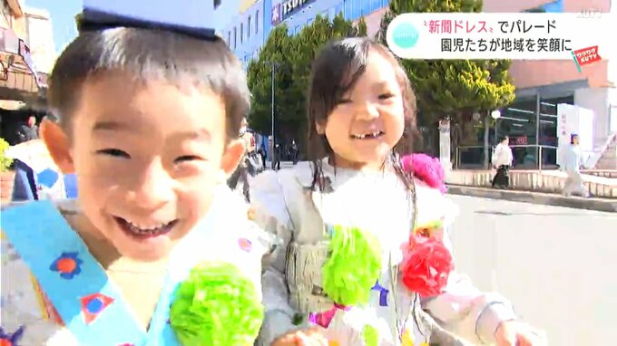 ひな祭りを前に高知県安芸市の園児たちが行ったパレード。新聞で作ったドレスを着て、街の人とふれあうイベントで、まちには笑顔と笑い声があふれていました。