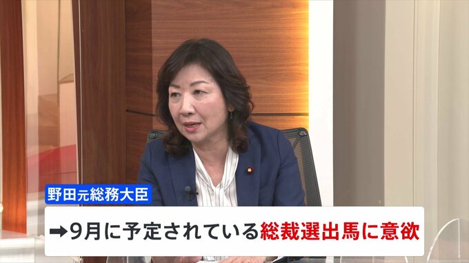 自民党の野田聖子元総務大臣はBS-TBSの番組に出演し、今年9月に行われる予定の総裁選に出馬する意欲を示しました。自民党 野田聖子 元総務大臣「前回、派閥に阻まれても出ることができたので。前回(の総裁選)…