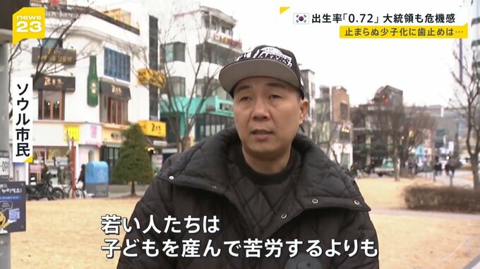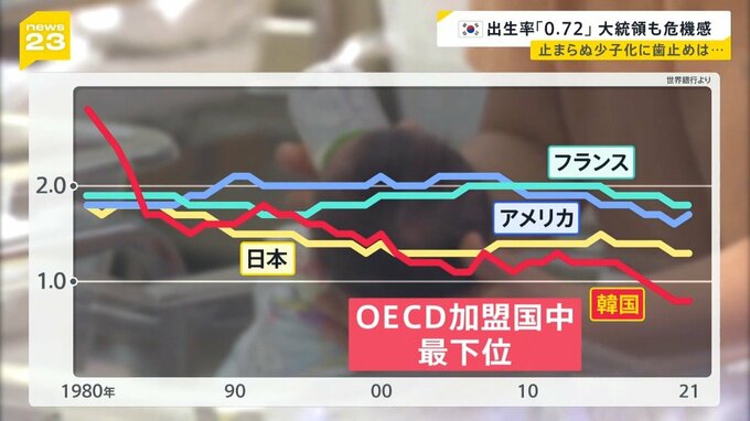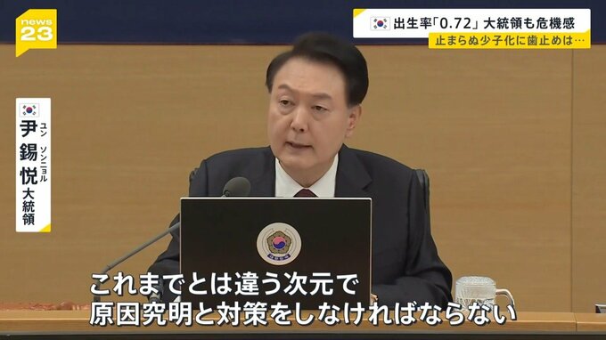 韓国では去年、1人の女性が生涯に出産する子どもが「0.72」となり、過去最低を更新しました。止まらぬ少子化に大統領も危機感を示しています。