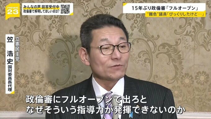 「本来だったらやはり(自民党)総裁として、この5人の人たちにきちっと説得をして、政倫審にフルオープンで出ろと、なぜそういう指導力が発揮できないのか。もう本当にその点は、大きな疑問が残ってます」