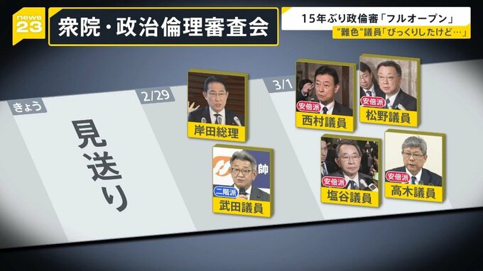 15年ぶりの政倫審は、29日に岸田総理と二階派の武田議員の審査が、3月1日に安倍派幹部4人の審査が行われます。
