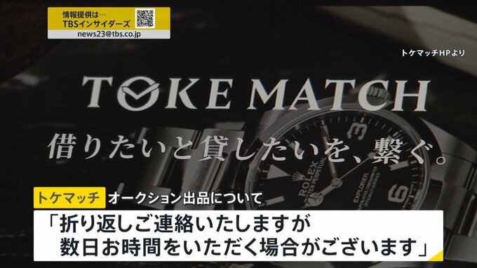 腕時計がオークションサイトに出品されていることについて、トケマッチ側は私たちの取材に対し、28日までに「折り返しご連絡を致しますが数日お時間をいただく場合がございます」と回答しています。