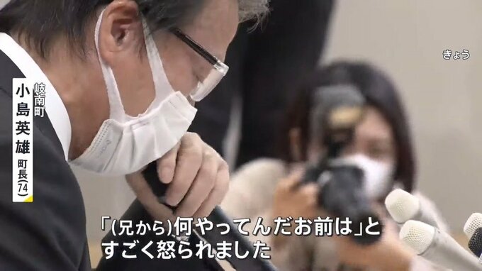 28日、記者会見した、岐阜県・岐南町の小島英雄町長。