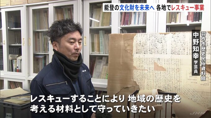 能登半島地震で被害を受けた建物の中から貴重な美術品や古文書などを取り出し保管する文化財レスキュー事業が石川県の被災地で行われています。羽咋市に住む92歳の男性の自宅を訪れたのは市の歴史民俗資料館の学芸…