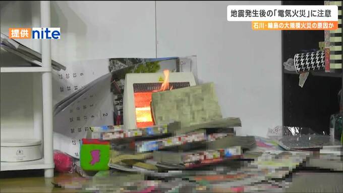 また、消防庁によりますと、能登半島地震により石川県輪島市で発生した大規模火災は、電気に起因した火災の可能性が指摘されています。