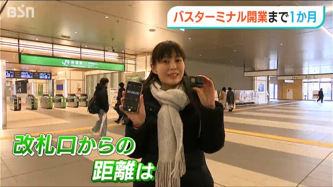 「改札口から新しいバスターミナルまでどれくらいの距離なのか、実際に歩いてみます」