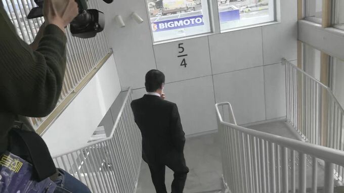 29日朝、辞職届けの提出を終えた小島町長。