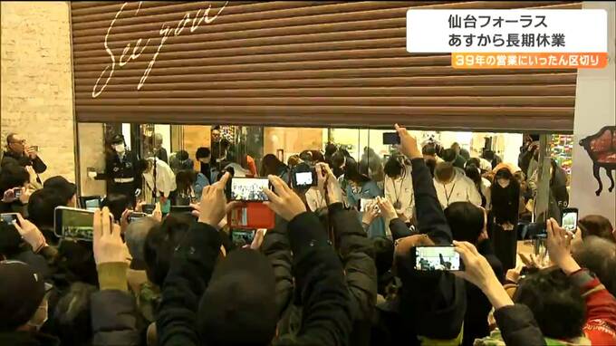 仙台市中心部にあるファッションビル「仙台フォーラス」が建物の劣化調査などのため、29日で39年間の営業に一旦、区切りをつけ3月1日から長期休業に入ります。仙台フォーラスの前では、休業セレモニーが行われまし…