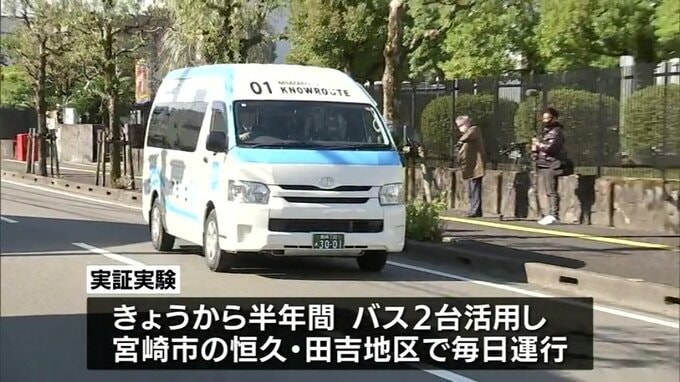 宮崎交通のAIを活用した乗り合い型バスが、1日から試験運行を始めました。宮崎交通が1日から実証実験で運行する「宮交のるーと」。1日はバスの出発式が行われ、関係者がテープカットをして、試験運行の開始を祝い…