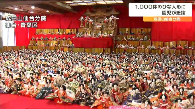 桃の節句を前に、仙台市内の寺で全国から寄せられた1000体のひな人形に園児が感謝の気持ちを伝えました。