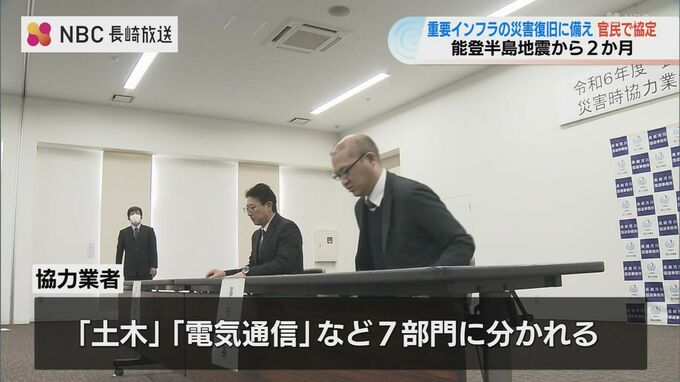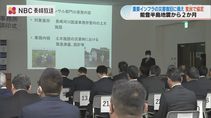 能登半島地震の発生から3月1日で2か月です。災害時に支援の妨げとなる道路被害などの早期復旧につなげようと、国交省長崎河川国道事務所が協力業者と協定を結びました。