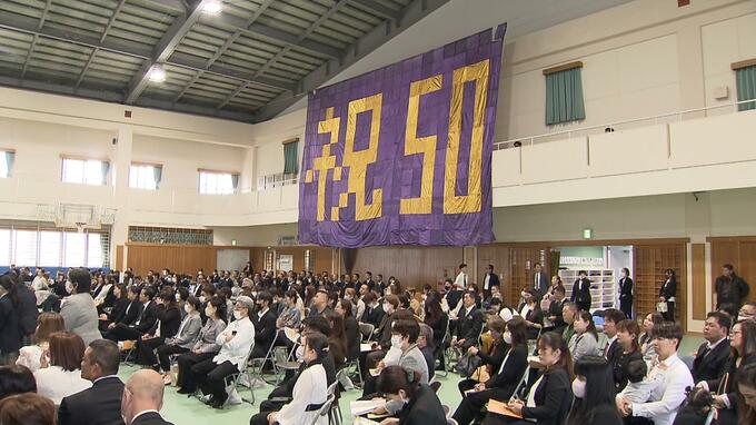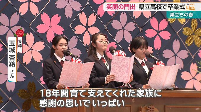 式典では、1人1人の名前が呼ばれ新里彰久校長が卒業証書を授与。卒業生の代表は3年間を振り返り、感謝の言葉を述べました。