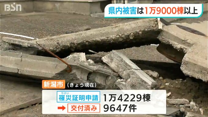 新潟市ではこれまでに1万4000件余りの罹災証明の申請がありましたが、これまでに交付されたのは9600件ほど。手続きは着実に進んでいますが、本格的な復旧はこれからです。