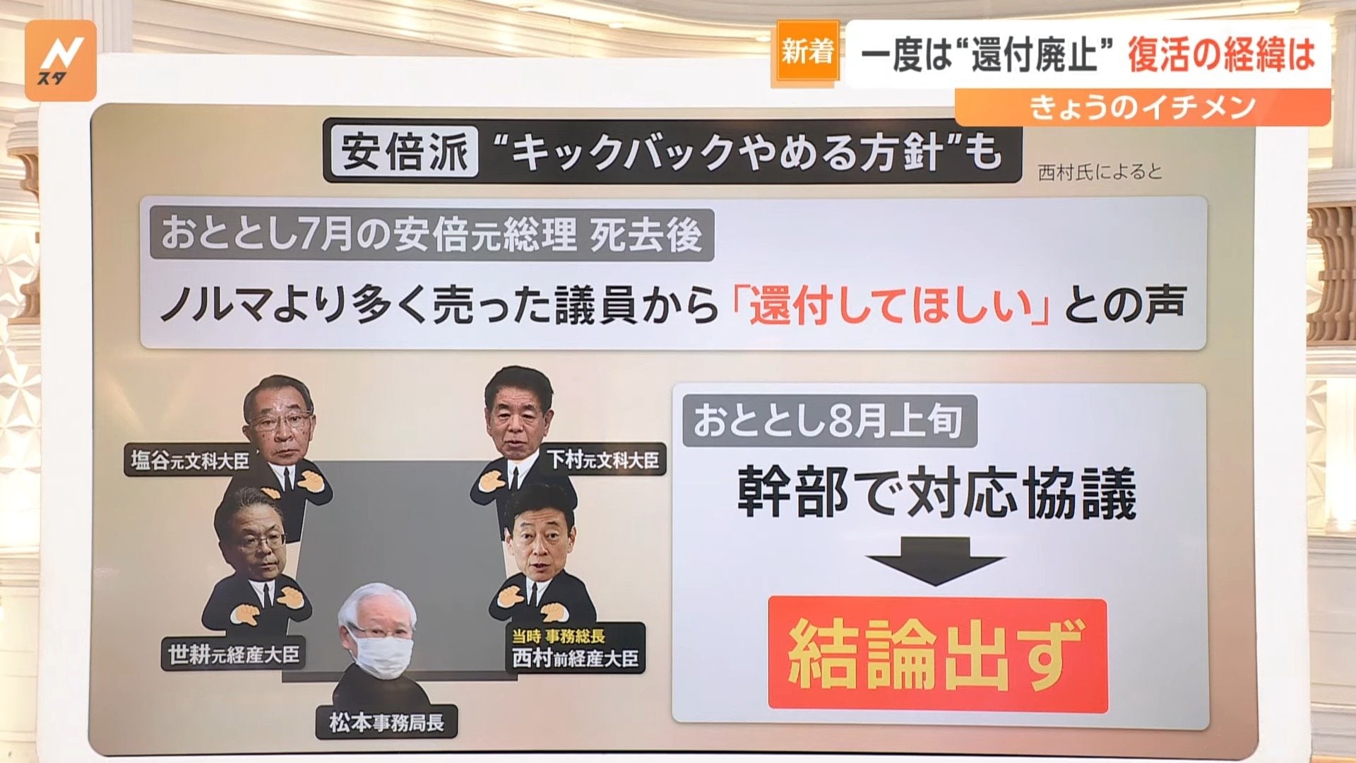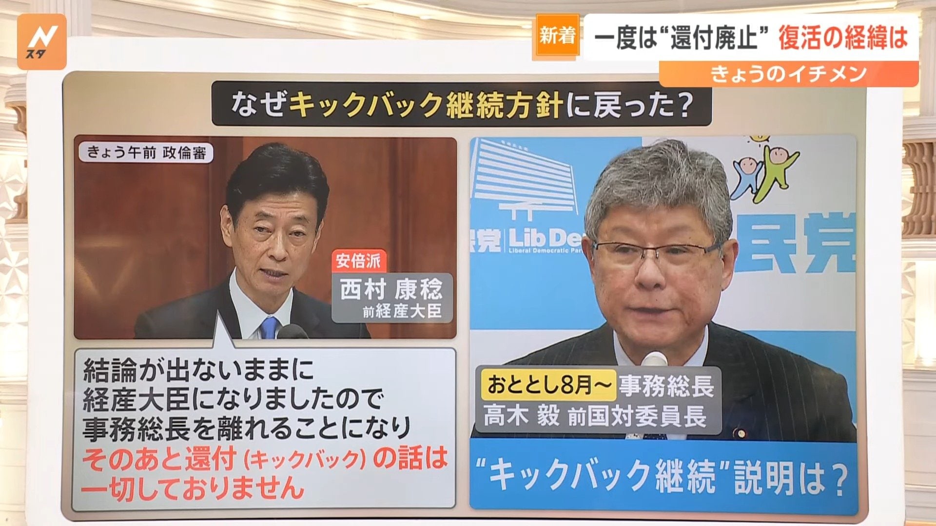 その中で、注目された発言が西村氏からありました。安倍派がキックバックをやめる方針を持っていた時期があったということなんです。