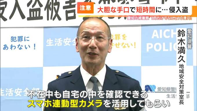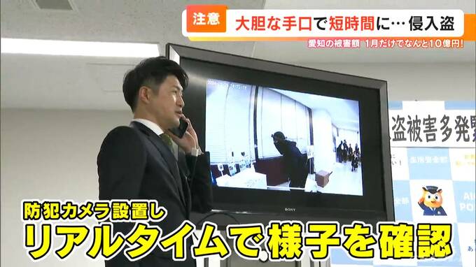 ことし1月、たった1か月間に、愛知県内で確認された侵入盗の被害件数は263件。その被害額はなんと10億円にも上り、全国ワーストに。こうした状況を打開するため警察は、防犯カメラを付けるだけでなく、リアルタイムで様子を確認することが大切だと呼びかけています。