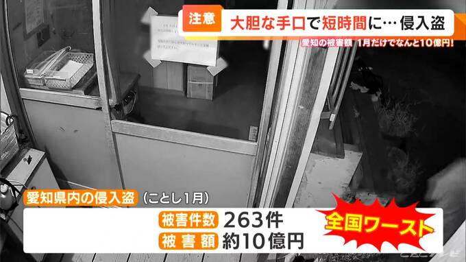 ことし1月、たった1か月間で愛知県内で確認された侵入盗の被害額は、なんと10億円にも上ります。その手口は「大胆」かつ「短時間」なのが特徴です。防犯カメラがとらえました。