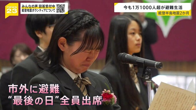 「皆で助け合いながら復興に向けて一歩一歩前に進んでいきましょう」。輪島市の高校が卒業式を迎えました。能登半島地震の発生から2か月。石川県では241人が亡くなり、今も1万1千人以上の方が避難生活を強いられています。