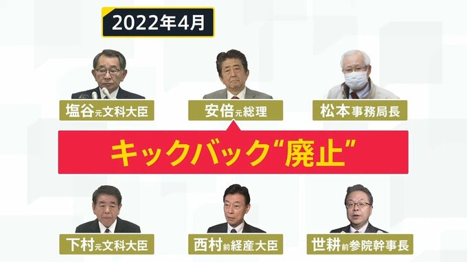 「安倍会長から『現金で還付(キックバック)が行われている』と。これは『非常に不透明で疑義を生じかねない、疑念を生じかねない。還付(キックバック)そのものをやめる』と」
