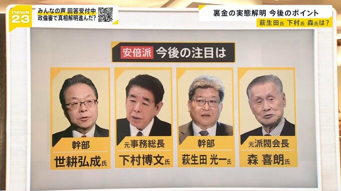 ここで4人の方に特に注目したいと思います。この先、安倍派幹部で参院議員の世耕弘成さんは「説明責任を果たしたい」と言っているので、参議院の政治倫理審査会に出てくるかどうかも注目です。