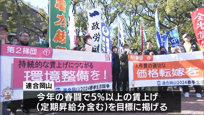 岡山県内で、労働者の賃上げなどを求める「春闘」が本格化している中、県内の労働組合の団結をはかろうと、総決起集会が岡山市北区で開かれました。総決起集会は、岡山県内の労働組合で作る連合岡山が開いたもので…