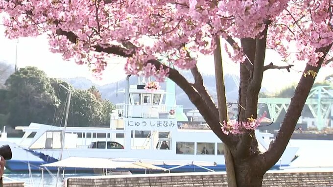 尾道市で早咲きのサクラ、河津桜が見頃となっています。尾道水道の護岸沿いで11本の河津桜が訪れた人たちを楽しませています。河津桜はソメイヨシノよりひと月ほど早く見頃になる早咲きの桜です。大きくて見栄えが…