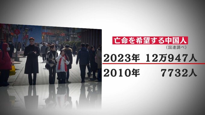 国民に強権的な姿勢を見せる中国。こうした中、現在国外にいて、「亡命」を希望する中国人は去年だけで12万人以上。2010年の15倍に。