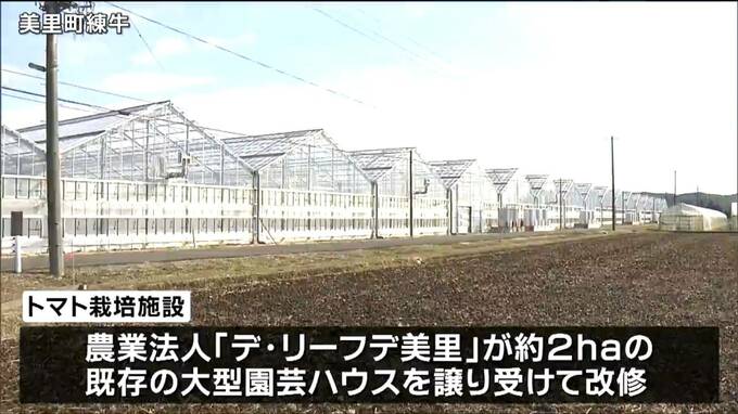美里町練牛に完成したトマトの栽培施設は、農業法人「デ・リーフデ美里」が広さおよそ2ヘクタールある既存の大型の園芸ハウスを譲り受けて改修しました。