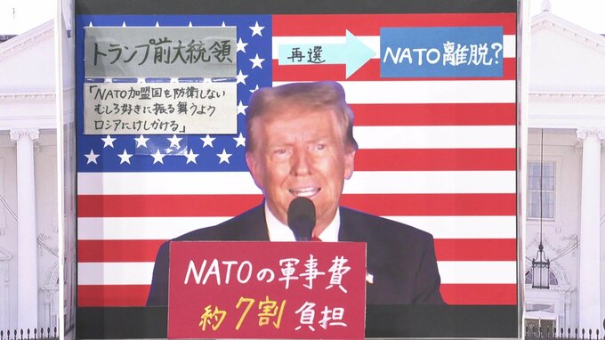 一方で、懸念されているのはアメリカ大統領選でのトランプ氏の再選です。2月、トランプ氏は、適切な国防費を負担しないNATO加盟国について、「防衛しない。むしろ好きに振る舞うようロシアにけしかける」などとロシアに攻撃を促すかのような発言をしていて、再選されればアメリカのNATO離脱を持ち出すとの見方も浮上しています。アメリカは、NATOの軍事費の7割近くを負担していて、仮に離脱すればNATOは極めて深刻な事態に陥ることになります。
