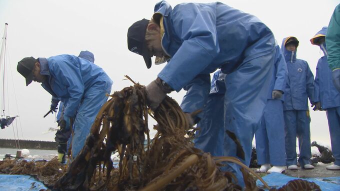 富山県氷見市の女良漁港では、特産ワカメの収穫祭が行われ、被災した姿地区の住民も参加しました。雪が降る中、行われたワカメの収穫祭。これは、地域の魅力を再発見してもらおうと行われているものでことしで11回…