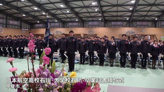 能登半島地震で被害を受けた石川県にある日本航空高校石川と日本航空大学校石川の卒業式が、山梨県甲斐市で行われました。