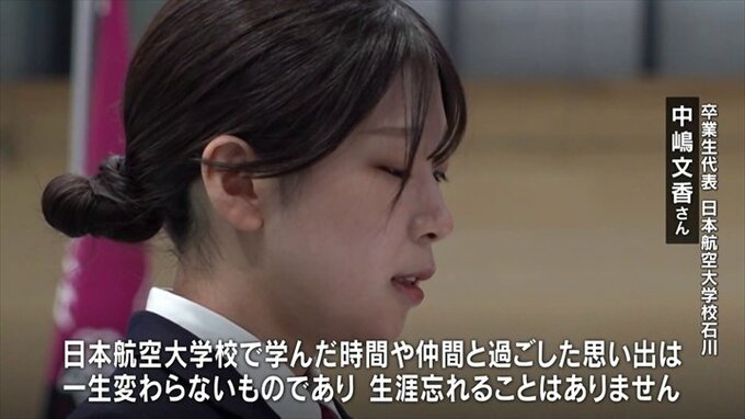 そして、卒業生を代表して日本航空大学校石川の中嶋文香さんが、学生生活の思い出や感謝の気持ちを述べました。