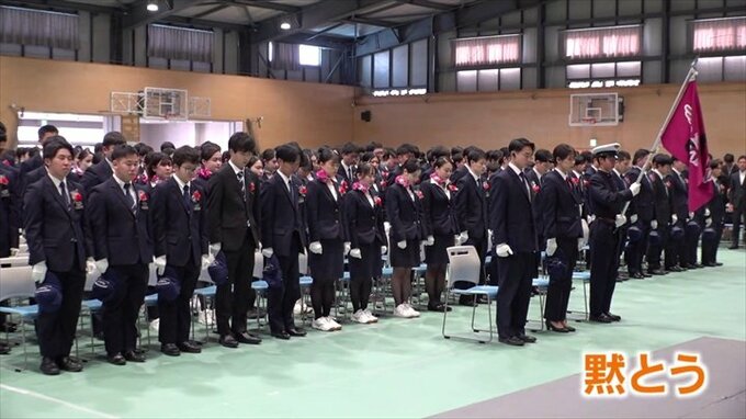 式にはリモートも合わせて高校と大学校の約350人が臨み、1分間の黙とうをした後、卒業証書が手渡されました。