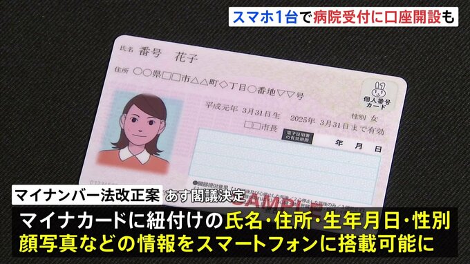 政府がマイナ保険証をはじめとするマイナンバーカードのすべての機能をスマートフォンに搭載するため、マイナンバー法の改正案をあす閣議決定し、今の国会に提出することがわかりました。改正案では、マイナカード…