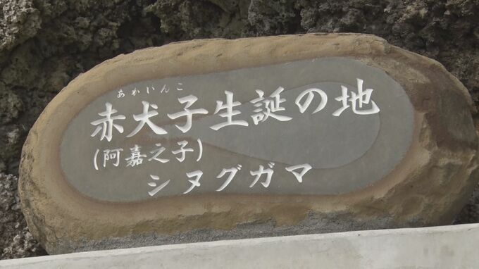 第二尚氏時代に活躍し、琉球古典音楽の創始者として信仰されている「赤犬子」はうるま市の津堅島で生まれたと伝えられていて、生誕地とされる島の西側の「シヌグガマ」では毎年、さんしんの日に合わせて演奏会が開かれています。