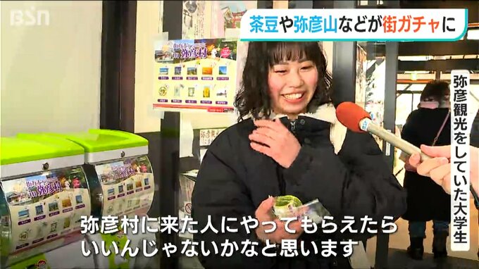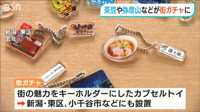 ブランド茶豆に弥彦山やロープウェーなど、名所や特産などをキーホルダーにした『街ガチャ』が、新潟県の観光地・弥彦村でも4日から設置されました。