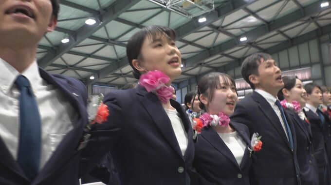 その後卒業生たちは互いに肩を組んで校歌などを歌い、それぞれの思いを胸に新しいステージへと羽ばたいていきました。