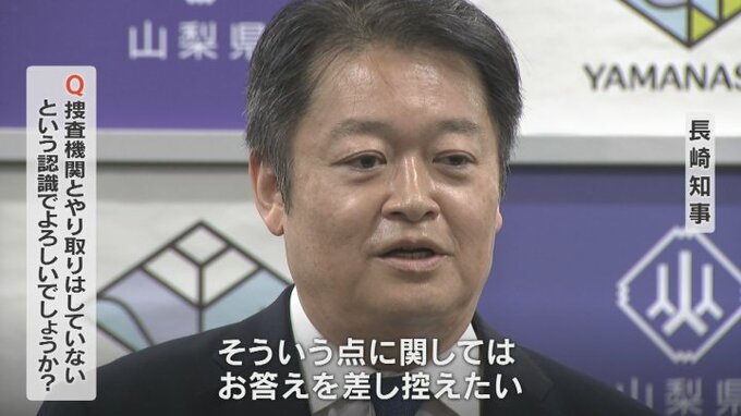 山梨県の長崎幸太郎知事は4日の会見で、これまでの説明にあった総務省への確認や自らが保管する現金1182万円についての捜査機関への連絡について問われましたが「答えを差し控える」としました。