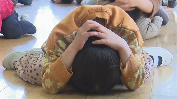 ウサギや亀のポーズや大声を出すことで災害や犯罪から身を守る防犯教室が甲府市の認定こども園で開かれました。この教室は子どもたちに災害や不審者から身を守る方法を学んでもらおうと行なわれ、甲府市の和成こど…