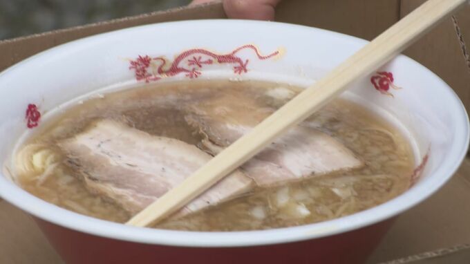 「カップラーメンしかないんですよ、この寒さで心があったまりますね。並んだ甲斐があります。全部回って、健康に力つけたいですね、心も何もかも」