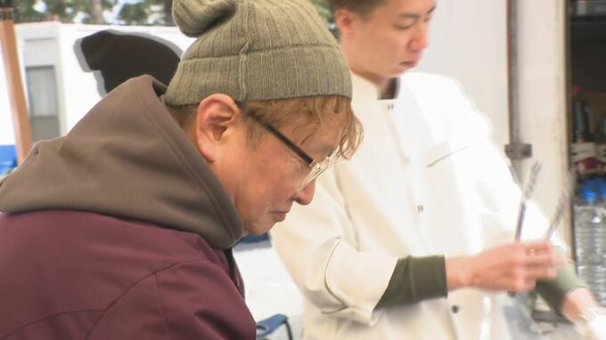 石川県輪島市の神社では、東北や関東で店を構える有名シェフらが腕をふるい、寒空の下、できたての温かい料理で地元住民をもてなしました。