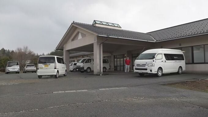 穴水町岩車にある聖頌園デイサービスセンター。地震で建物や駐車場に大きな被害を受けましたが、4日から業務の一部を再開し、施設の利用者だけでなく町内で介護が必要な人たちに無料で入浴サービスの提供をはじめました。