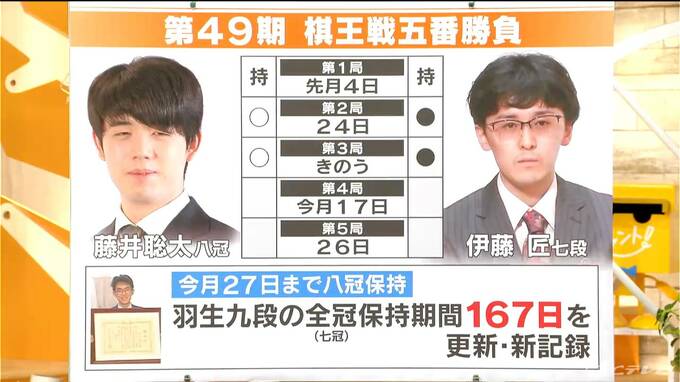 ご自身で打ち立てた記録を、もうここからはどこまで更新するかというフェーズに入っているわけですね。棋王戦第4局は3月17日に栃木県日光市で開催されます。